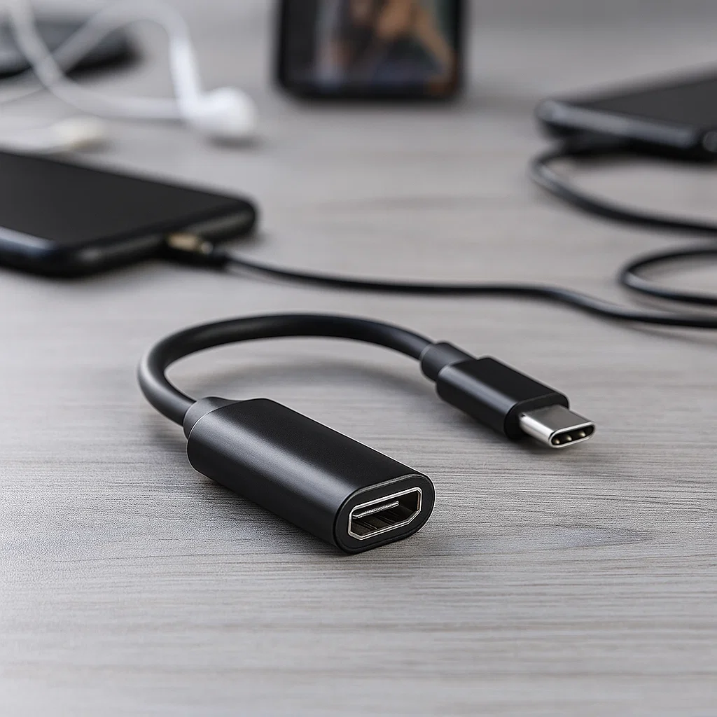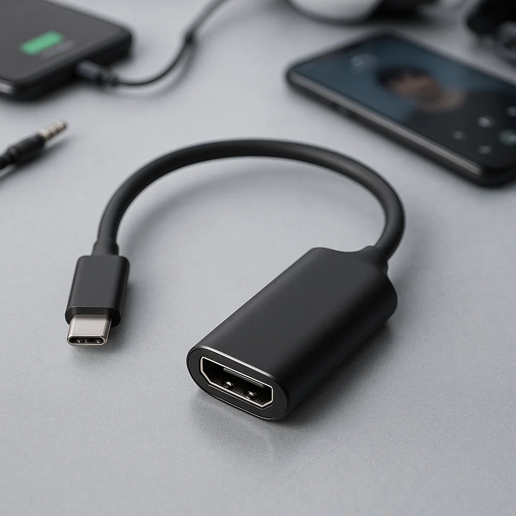 - Adaptador de interfaz multimedia tipo C a HD: Permite conectar dispositivos con entrada USB-C a pantallas con entrada HDMI.
