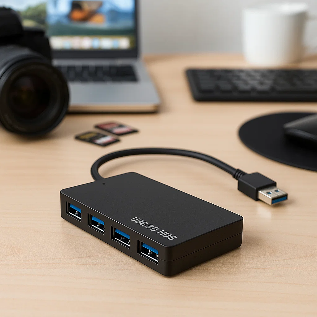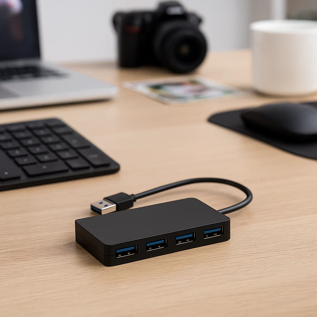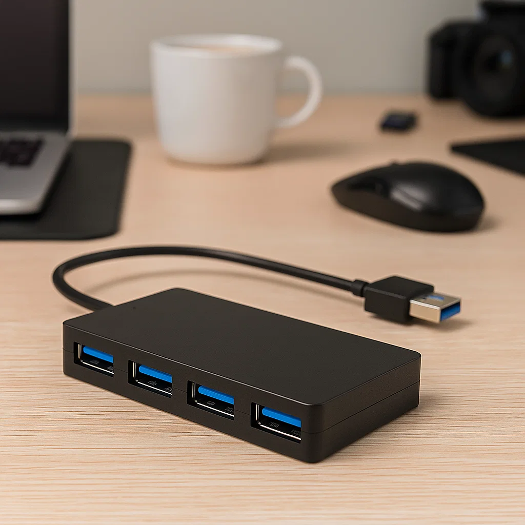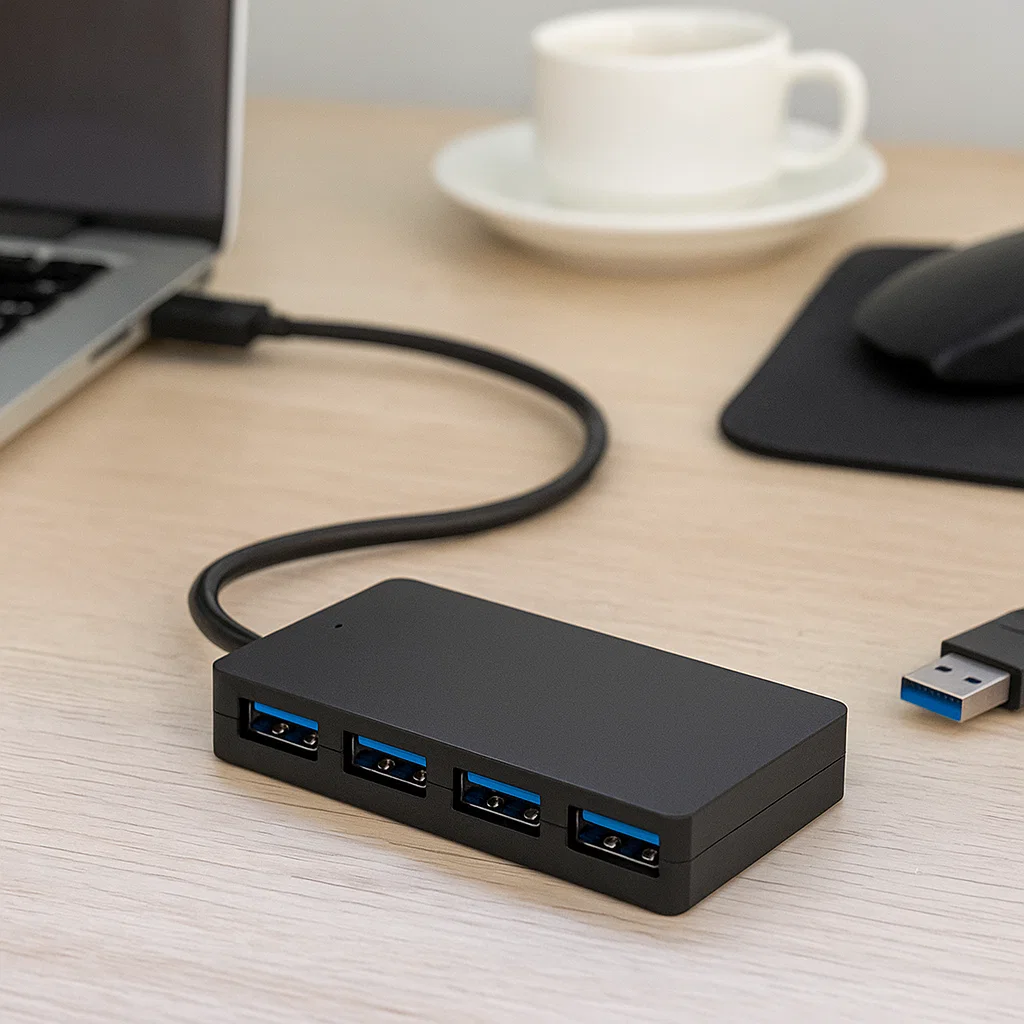 - Este hub multipuertos está diseñado para expandir al máximo la conectividad sin ocupar demasiado espacio. Con solo un puerto USB disponible en tu equipo, podrás conectar hasta cuatro periféricos simultáneamente: teclados, ratones, pendrives, discos duros externos, impresoras, controladores, ventiladores USB y mucho más.